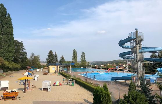 Freut euch auf abwechslungsreichen Badespaß mit einem großen Schwimmbecken, viel Platz zum Planschen und Toben sowie einer großen Rutsche, die für extra Action sorgt. Die weitläufigen Liegewiesen und Sandbereiche laden zum Entspannen zwischen den Trainingseinheiten ein - perfekt, um neue Energie zu tanken oder einfach die Sonne zu genießen.