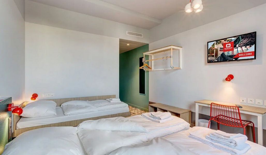 Dieses schöne Hotel-chic, lässig und gemütlich liegt im 12. Arrondissement und ist 2 km vom RER-Bahnhof Vincennes sowie 10 Gehminuten von U-Bahn-Stationen, Bushaltestellen, Restaurants und Märkten entfernt. Zum Bois de Vincennes mit Radwegen und botanischem Garten sind es 15 Gehminuten. Ihr schlaft in Mehrbettzimmern mit Dusche/WC, Fernseher und kostenlosem W-Lan. Das Hotel verfügt über eine Lobby, Getränke- und Snackautomaten. Das Essen gibt es in Buffetform.